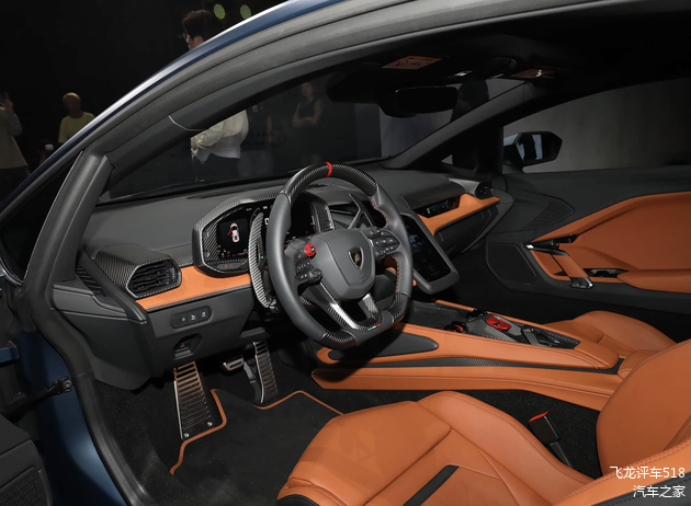 兰博基尼Temerario车内采用了战斗机风格的驾驶座舱,加入了包裹性和支撑性极强的碳纤维座椅,采用了轻量化Alcantara面料铺陈,中控台将会进行赛车化的精简,还将会配备防滚架和全新的方向盘,方向盘上的旋钮可以让驾驶者在Città(城市)、Strada(道路)、Sport(运动)、Corsa(赛道)和Corsa Plus(赛道+)等驾驶模式。中控台借鉴了“大哥”Revuelto的“飞行员体验”理念,配备了12.3英寸数字仪表盘、8.4英寸中控屏以及一块9.1英寸的副驾驶娱乐屏,科技感与时俱进。车内配备了两个桶装赛车座椅,壳体采用了碳纤维材质,加入了轻量化的Alcantara面料,并配备了四点式安全带,能将乘客牢牢固定在座椅上。操控岛区域配备了类似战斗机导弹发射按钮的一键启动按钮,后方还有造型别致的挡位选项。