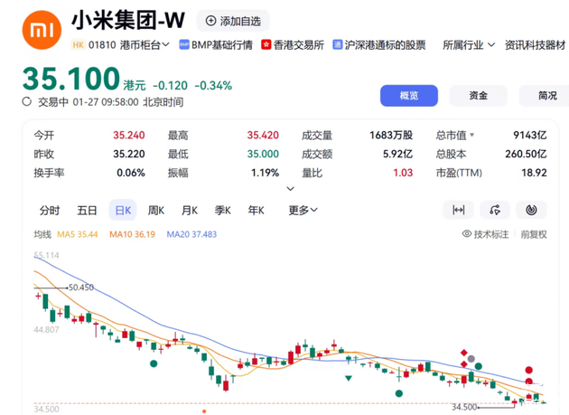 股价35.1,市值9143亿,至此,小米的股价基本已经回落到了2024年尚未造车时的水平。我们不能说这是竹篮打水一场空,毕竟,和造车前的2000多亿市值比,这已经是赚到了。