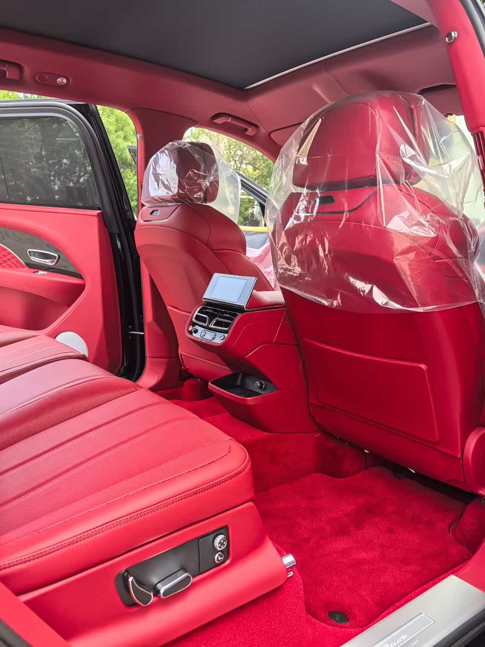 25款添越EWB雅度版 报价:315万谈 颜色:宝石黑/热刺红 配置: 3辐式热刺红加热真皮镶边方向盘 黑钢琴木 红色安全带 ACC 自适应定速巡航 22寸十幅铝合金喷漆轮毂 金属油箱和机油箱盖 座椅菱形格纹绗缝 宾利徽章座椅刺绣(Azure) 运动脚踏板 自正式宾利轮毂盖 宾利动态驾驶 标准刹车碟配黑色卡钳 镀铬前保险杠格栅 4+1舒适座椅配置 反衬色缝线 红色厚绒毛地毯衬垫 (前后排) 后门电动关闭功能 氛围灯 照明式迎宾踏板