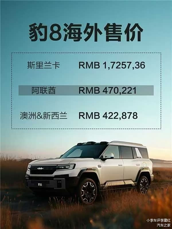 那么为什么方程豹豹8和豹5在海外市场的价格那么强势呢?核心原因就是稀缺,因为在上述这些国家和地区,目前主销的车型,可能还是日韩系的燃油车,这些车型的特点大家是知道的,配置低、动力弱,所以当豹5和豹8这种集动力、空间、性能和越野能力的“大杀器”来到这些国家和地区,对于那些燃油车,就是碾压级别的存在。而且其他中国汽车品牌的硬派越野在这些国家和地区也没有多少存在,所以也不存在内卷,价格自然就可以很离谱,而且当地人还认。