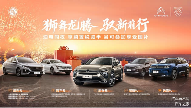 当前,东风标致积极响应市场趋势,为新年购车用户准备了“油电同权 享购置税减半 另可叠加享受国补”政策及一系列新春购车礼遇。此次推出的购车权益涵盖多方面,有焕新礼:全系可享国家补贴焕新更超值,旧车报废换新补贴10%(不超过15000元),旧车置换新车补贴6%(不超过13000元);购车礼:新年购买东风标致全系车型,直享现金优惠及另畅享50%购置税补贴;质保礼:五星守护加码——发动机终身质保承诺;增值礼:老客户置换旧车回购补贴至高增值15%;关爱礼:免费更换防冻液/空调系统清洗养护。与此同时,为广大车主提供温暖、安心出行体验的“知音相伴 一路同行”冬季暖心行动也在全国范围内持续开展。