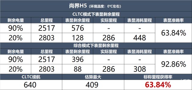 这辆车搭载了一块80千瓦时的三元锂电池,CLTC标称续航里程640公里。在北京冬季平均零下0摄氏度左右的气温下测试。充电至90%,CLTC表显续航里程576公里,综合续航里程396公里。行驶到电量剩余20%时,CLTC显示可续航里程128公里,综合可续航里程88公里。CLTC模式下表显消耗里程448公里,综合模式表显消耗里程308公里,实际行驶里程286公里。计算得出CLTC模式表显准确率为63.84%,综合模式表显准确率为92.86%。
