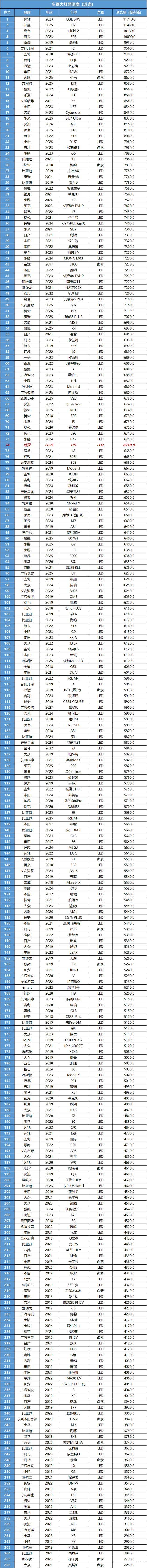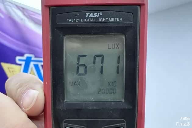 这辆车的大灯是LED光源,最大光照度为6710勒克斯,照明度不错。