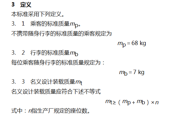 根据GB/T 5910-1998《汽车质量分布》规定,名义设计装载质量需要大于或等于乘客的标准质量加上行李的标准质量。其中,每位乘客的标准质量为 68千克,每位乘员随身行李的标准质量为7千克。加起来,一个人就是75千克。因此,一辆车名义设计装载质量需要不小于375千克。