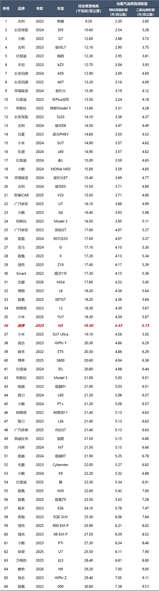 根据表显近百公里的平均电耗18.5千瓦时,由国标计算公式可以得出,按照燃料生命周期计算,当量汽油百公里消耗为4.43升;如果按照二氧化碳排放量计算,当量汽油百公里消耗为5.73升。