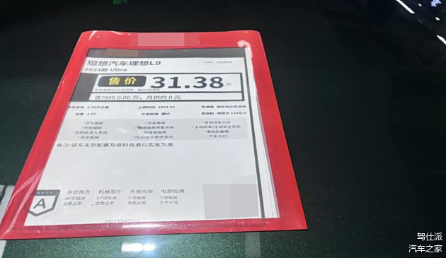 2024 款理想 L9 Ultra 版,新车 43.98 万元,2024 年 3 月上牌、行驶 2.9 万公里,现在二手落地价 31.38 万元,1 年 10 个月折损 12.6 万元,每万公里折损约 4.34 万元。这台车龄和上面那台小米SU7差不多的情况下,保值率为71.35%。