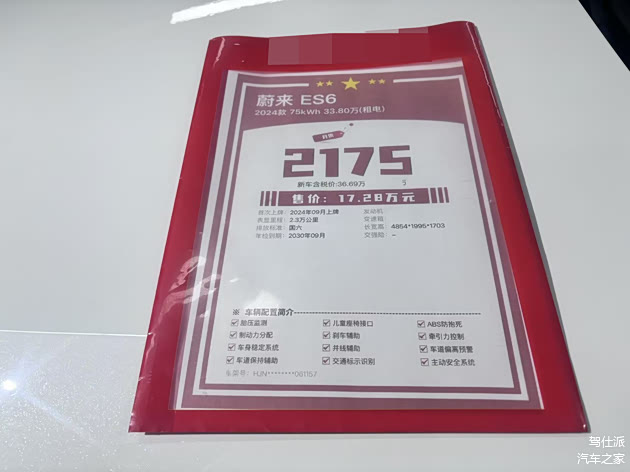 而这辆2024 款蔚来 ES6 75kWh 租电版,新车租电价 29.8 万元,2024 年 9 月上牌,行驶 2.3 万公里,现在二手落地价 17.28 万元,1 年 4 个月折损 12.52 万元,每万公里折损约 5.4 万元,保值率约为58%。