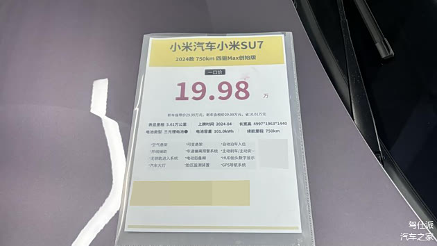 再看其竞品小米 SU7 2024 款 750km 四驱 Max 创世版,新车 29.99 万,2024 年 4 月上牌、行驶 5.61 万公里的次新车,当前二手落地价 19.98 万,1 年 9 个月折损 10.1 万元,每万公里折损约 1.79 万元。相当于这台不到2年的车,保值率是66.6%。