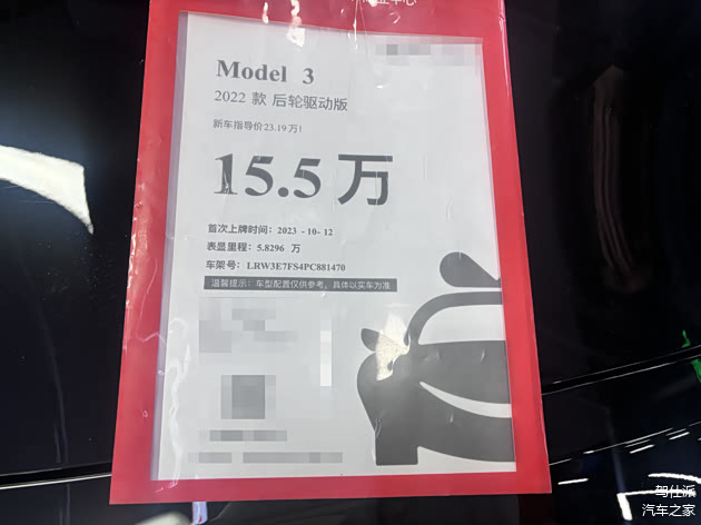 很多人说特斯拉保值,我们就来看看。比如 2022 款 Model 3 后轮驱动版,新车指导价 23.19 万,2023 年 10 月上牌、行驶 5.8 万公里,如今二手落地价约 15.5 万,2 年零 3 个月折损 7.69 万,每万公里折损约 1.33 万元。这台两年出头的车保值率是66.8%。