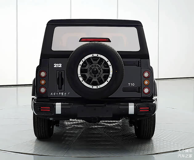 外观方面,三门版212 T10在第一代212身上保留着许多经典要素。隆起的机盖配上圆滚滚的车灯,复古而有韧劲,一眼望去便可领略到其特有的味道。三横式格栅中心网格极具辨识度,新设计前杠装备了前雾灯、双拖车钩等装备,越野范儿十足直拉。该车的侧边设计简约而有力度,软顶的造型韵味十足,后风的倾斜度也与初代212的概念巧妙地遥相呼应。后尾门底侧开,还有背挂式的备胎、与五门版一样的圆形尾灯,整体外观经典时尚。