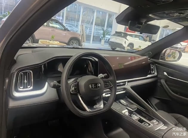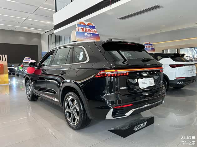 外观方面,从已到店的实车来看,长风系列整体造型延续了星越L一贯的大气风格。前脸依然是熟悉的盾形格栅,内嵌直瀑式镀铬饰条,配合两侧上扬的LED矩阵大灯,沉稳中透露出凌厉感。下包围采用贯通式熏黑设计,两侧点缀以獠牙状镀铬装饰,一条横向镀铬饰条贯穿其中,进一步拉伸视觉宽度,运动感和精致感兼备。
