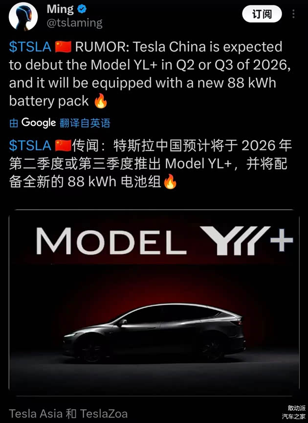 特斯拉即将在国内推出Model YL+车型,这款车最大的变动,就是把原本的82kWh电池换成了88kWh的大容量电池,这一改动看似简单,实则暗藏玄机,也引发了不少讨论。先说说这电池升级带来的直接好处。续航里程的提升是最直观的。原本Model YL搭载82kWh电池时,CLTC续航能达到751公里,这在同级别车型里已经算是不错的成绩了。可如今换上88kWh电池,配合特斯拉在电池管理、电控技术上的优化,续航里程有望突破800公里大关。这意味着什么?对于日常通勤来说,一周充一次电都绰绰有余,甚至两周一充也不是没可能;要是喜欢自驾游,跨省长途旅行也不用频繁找充电桩,中途补能一次就能轻松抵达目的地,彻底告别“续航焦虑”。