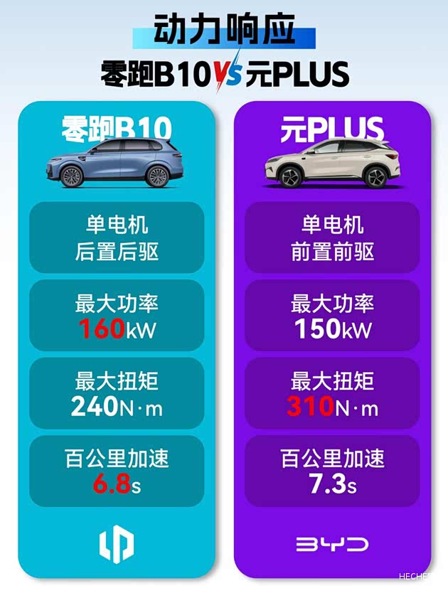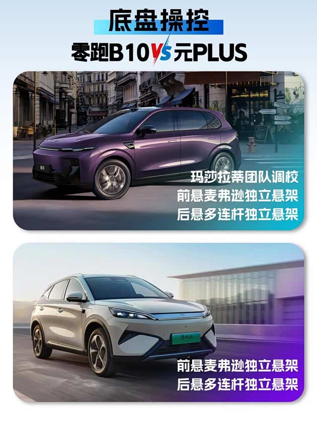 其实整体对比下来,能够看到两辆车的整体表现都非常出色,元PLUS展现出老牌新能源的底蕴,各方面都很均衡,没有明显短板,保有量很不错,是一台车不会出什么错的中庸车型,但是整体的价格相比自身产品力来说,有点贵了。零跑B10以后来者居上的姿态,强势入局,配置很丰富,用料更下本,尤其是价格上很亲民,而且现在买零跑B10可享5000购置税礼,还送充电桩和整车终身质保。