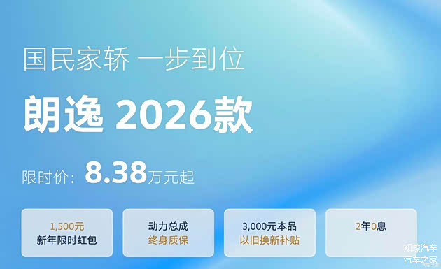 在这个节骨眼上,卖了几百万台的“国民神车” 大众朗逸,官方指导价12.09万起的2026款,直接喊出了限时8.38万起的惊人低价,相当于打了个六九折。