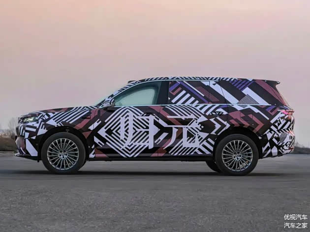 侧面配有传统物理门把手,车长预计达到5.3米,轴距超过5.1米,典型的大型SUV身材,也完全具备对标最新款理想L9和蔚来ES8等车型的实力。