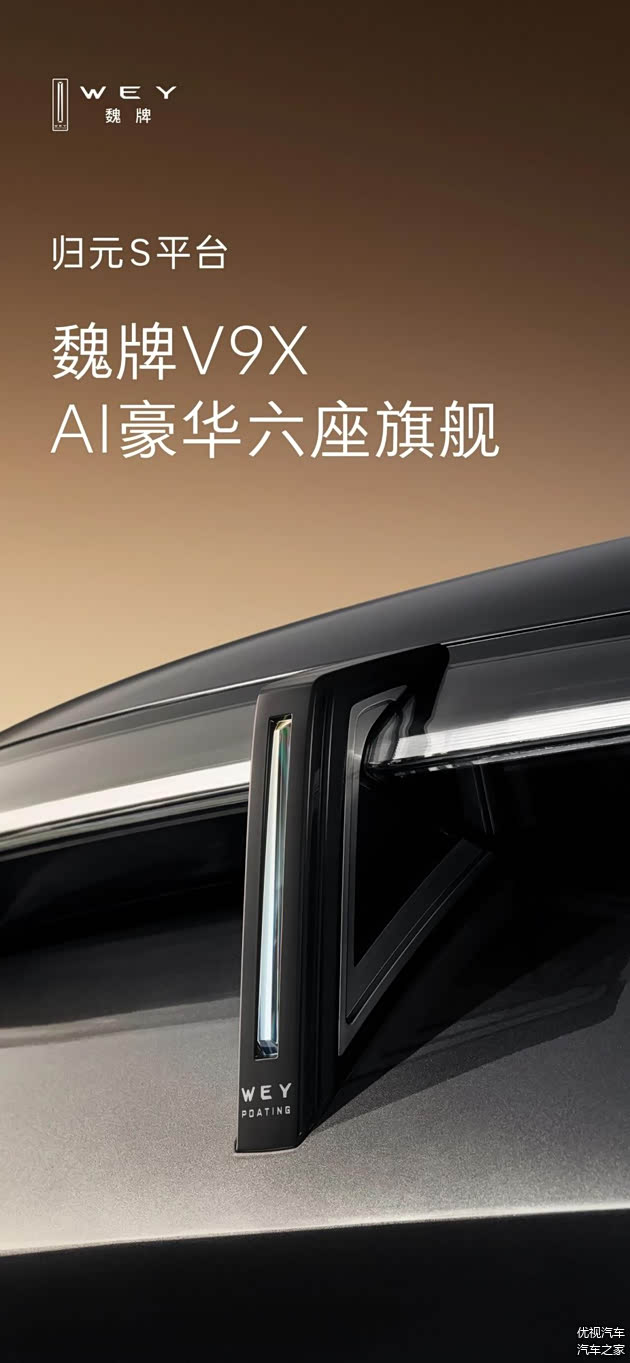 此外,从厂家发布的官图内容信息来看,这款新车除了命名是魏牌V9X,还是基于长城汽车最新的归元S平台打造,而定位则为AI豪华六座旗舰。