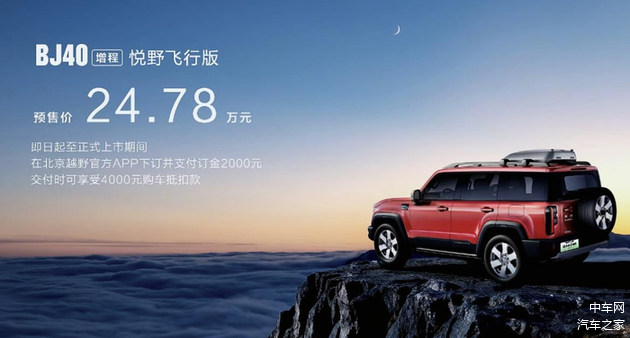 BJ40增程悦野飞行版已启动预售,预售价格为24.78万元。这款车型是在售版本的基础上开发的,其最大的特色是配置了车顶无人机存储舱,兼容车载无人机系统,也是三款新车型里唯一拥有空中扩展功能的车型。