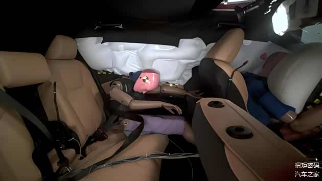 更贴心的是,它没落下任何一个座位。后排吸能区比国家要求的多了195毫米,就像上面那个追尾案例,后排吸能区靠自己变形吸收了大部分冲击力,坐在后排的老人孩子才安然无恙。前后排座椅也抗造,靠背抗冲击能力比法规要求高11%,撞的时候能牢牢按住乘客,不让人往前冲造成二次伤害。全车五个座位都配了能自动调节拉力的安全带,就连后排中间那个座,都用188厘米、100公斤的大个头假人反复测试,每个位置的防护都不打折扣。