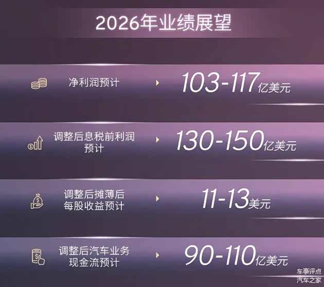 而也正是因为这笔钱已经支出了,后面不出意外的话,2026年业绩将会成倍数级增长——预计净利润在103-117亿美元左右,调整后息税前利润预计将达130-150亿美元。