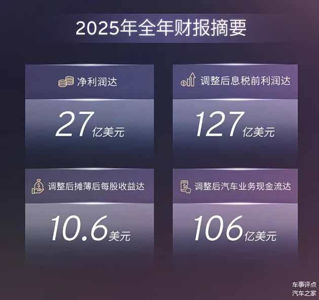日前,通用汽车发布了2025年财报:总营收1850亿美元。其中净利润27亿美元,调整后息税前利润127亿美元,调整后汽车业务现金流106亿美元。