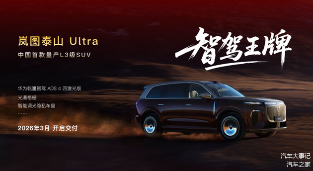 2026年1月28日,岚图汽车在年终媒体答谢会上宣布,岚图泰山Ultra将于今年3月正式开启交付。