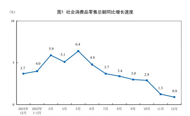 值得注意的是,2025年12月,我国社会消费品零售总额45136亿元,同比增长0.9%。其中,除汽车以外的消费品零售额39654亿元,增长1.7%。