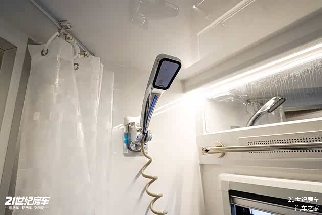 卫生间功能拉满,固定式马桶、一体式花洒搭配洗面台盆,洗漱如厕样样便利,旅居生活舒适感拉满,260L清水箱容量110L灰水箱容量满足日常用水。