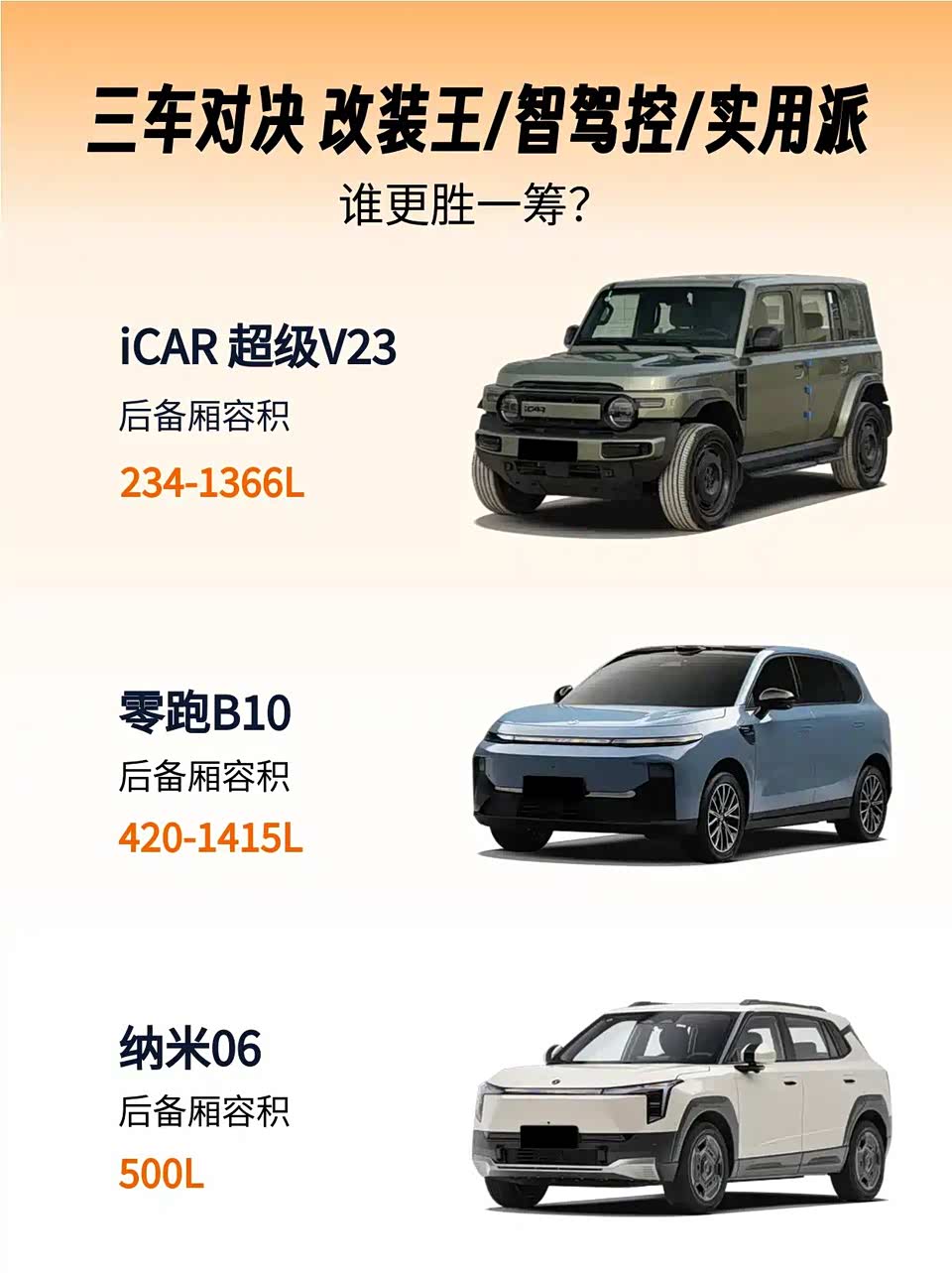 一句话总结:要回头率选iCAR,要智驾选零跑,要空间选纳米!