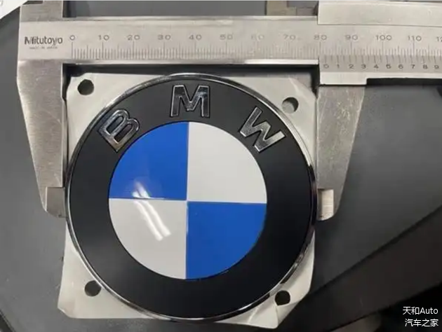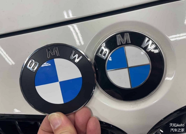 最大的差异是“内圈”位置,目前使用的车标有两个圆圈,内外圈都是镀铬条;而新款车标只有外圈还是镀铬条,内圈没有了,且蓝白相间的十字镀铬条也被取消了,甚至外圈以内的整个面都没有了金属光泽质感,就像是汽车覆盖件没有了清漆一样,改为哑光质感。并且外圈镀铬条有熏黑效果,视觉效果“暗淡”了一些。