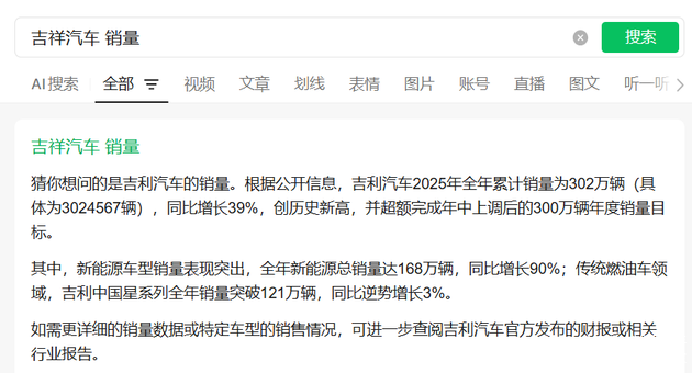 而其知名度方面,更是堪称无人问津。目前吉祥汽车官方微博已停更超过一年,再打个比方,无论是在公众号还是豆包,搜索“吉祥汽车”四字,聪明的AI都会帮你更正为“吉利汽车”再将吉利的信息递到你的面前。
