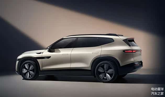 新车外观配有无框车门、隐藏式门把手、21 英寸轮毂与金色卡钳等新能源车年轻化配置,整体风格较为简洁前卫。