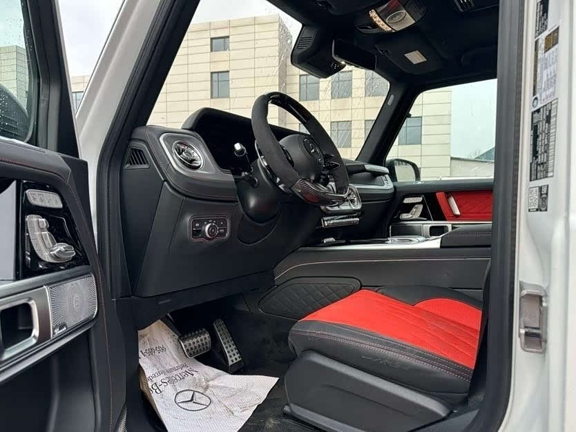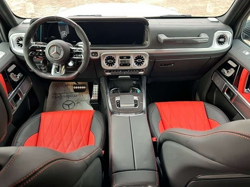 26款奔驰G63双碳满配磨砂白熊猫/黑红双拼 双碳满配 配置:磨砂白漆面、暗夜包、暗夜增强包、熊猫配色(熏黑前后杠、熏黑轮眉)、黑色踏板、黑色排气、22寸熏黑多幅锻造轮毂、灰色卡钳、黑色干椒红双拼菱形格内饰、座椅舒适包(通风、按摩、主动式多轮廓座椅)、碳纤维方向盘、碳纤维内饰、舒适组件(无钥匙进入、冷热杯架、手机无线充电)、温暖组件(方向盘加热、挡风玻璃加热)、方孔电子拖钩、隐私玻璃、副驾拉手签名等