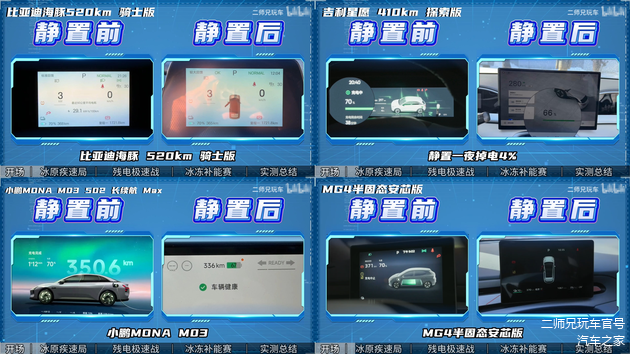 而在零下三十九度到零下三十五度的极寒环境中,能充电还不能说明啥问题,更重要的是要把电量给保持住。在同样的温度下放置一夜,吉利星愿、小鹏MONA M03都存在掉电3%到4%的情况。