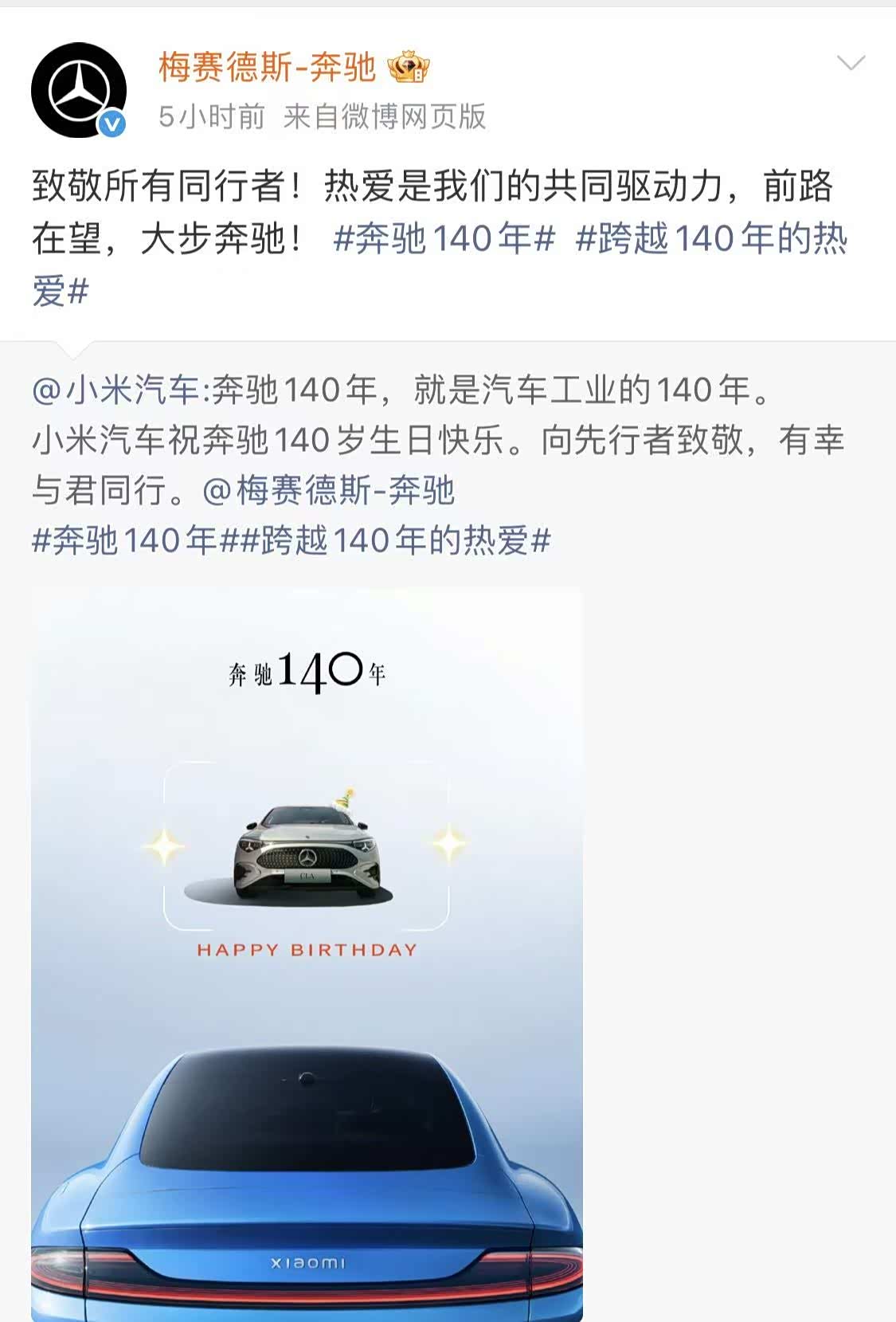 在梅赛德斯-奔驰诞生140周年之际,同行纷纷献上了祝福。除了一直相爱相杀的宝马和奥迪这两位德国老乡,还有凯迪拉克、别克、理想、小米、吉利、沃尔沃、保时捷等,大家觉得谁家的文案写得最好呢?