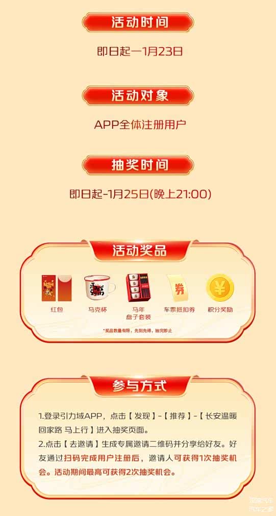 为构建全天候、多渠道的服务体系,长安汽车同步开启长安“引力域”APP线上温暖平台。返乡人员可参与APP内“长安温暖回家路 马上行”抽奖赢好礼,现场扫码注册更可解锁专属权益,实现线上线下温暖相伴。