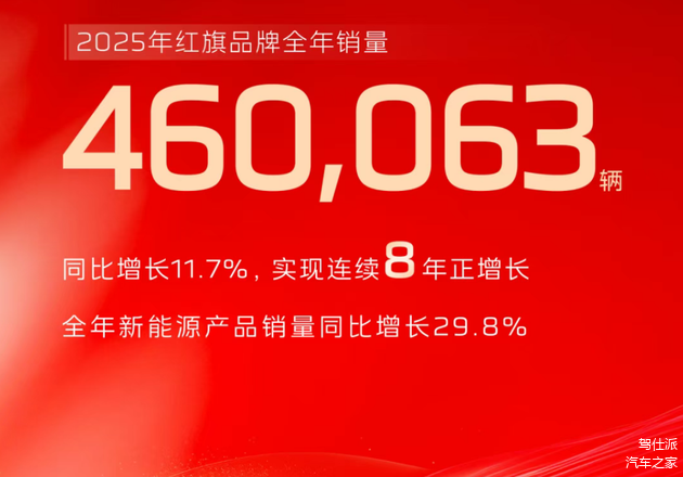 46万辆销量、11.7%同比增长、14.9万辆新能源产品、200万累计用户,这组兼具规模与速度的数字,是红旗2025年交出的成绩单。