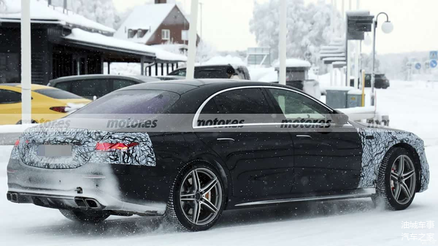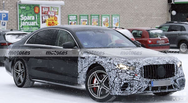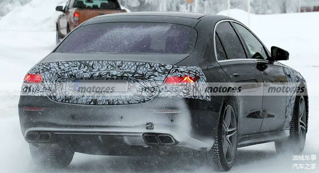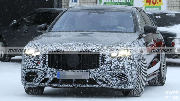 从外观来看,此次曝光的测试车伪装覆盖已经大幅减少,整体轮廓与现款车型差异并不显著。前脸部分依旧保持了AMG车型典型的设计语言,大尺寸的直瀑式进气格栅占据视觉中心,下方进气口的造型也仍然显得十分宽大。头灯组内部光源结构有所更新,从轮廓判断,预计会与新款S级轿车一样,采用以三叉星徽为灵感的点亮样式。车辆侧面装配了21英寸轮圈,并搭配红色涂装的制动卡钳。车尾部分,尾灯内部同样预计调整为星徽光效,后包围两侧则保留了AMG标志性的方形双边共四出排气尾管,并在细节处镶嵌了“AMG”标识。