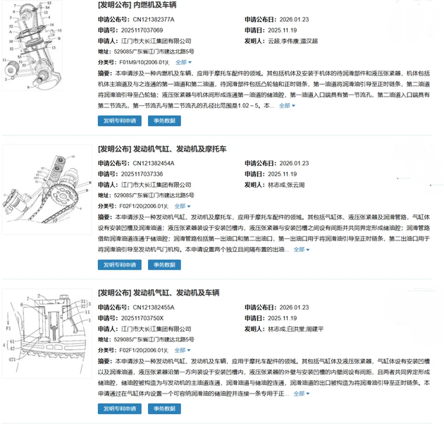 另外,曝光的还有发动机内部的油道技术、新款气缸体、液压涨紧器等相关组件。由此可见豪爵相关技术所涉及的应该是一款全新引擎,而并非单一技术。