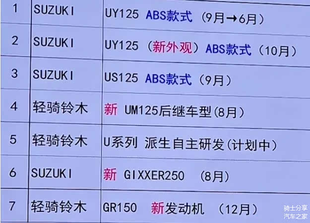 2.轻骑铃木新车规划