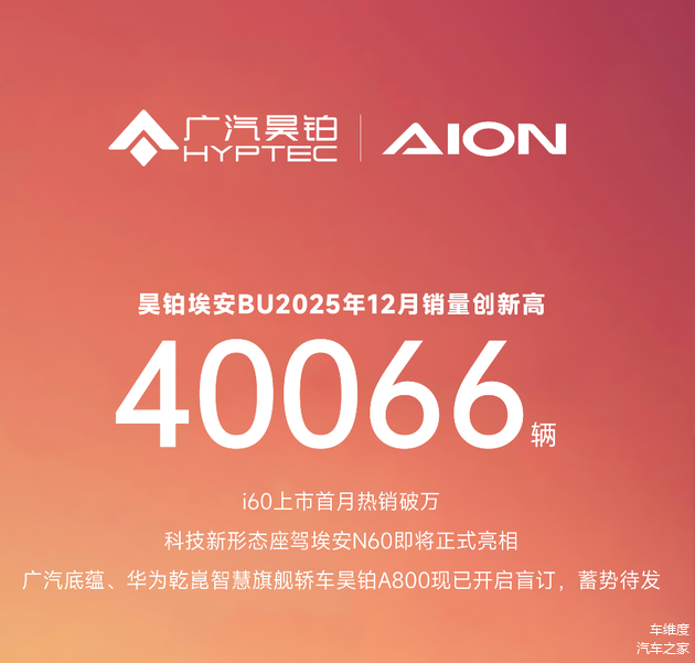 数据上则更加直观,2025年12月,昊铂埃安BU实现销量突破4万辆,其中埃安i60上市首月即破万,C端占比持续提升,并且2026年1月,尽管行业迎来春节前销售淡季,广汽埃安终端销量预计约2.55万辆,同比增长近80%,这足以印证广汽改革转型的初步成效。