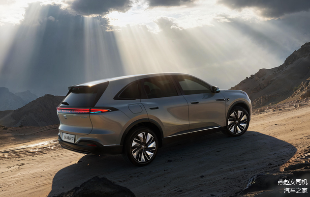 车身尺寸长宽高分别为4850/1910/1676mm,轴距2850mm,大过比亚迪海狮06DM-i、长安启源Q07、阿维塔07等。车身侧面采用饱满的溜背式造型,并加入凌厉的线条点缀,同时还将采用半隐藏式门把手、20英寸亮面多幅式轮毂+米其林轮胎,车窗上沿提供熏黑、镀铬两种风格。