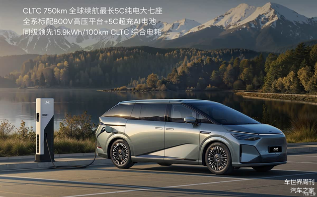 动力方面,2026款小鹏X9纯电动版将会提供单电机版本和双电机版本,并且标配800V高压平台+5C超充AI电池,纯电续航分为665km、650km、710km以及750km,CLTC综合电耗15.9kWh/100km,达到同级领先水平。