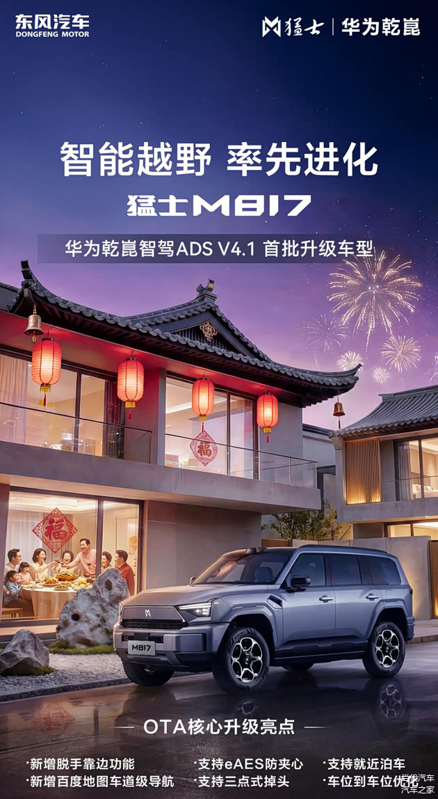 此次OTA升级带来的智驾辅助功能升级,恰逢其时为万千车主的新春返乡路送上硬核守护,让猛士M817成为最靠谱的出行搭档,而这份全场景出行的硬核底气,正是源于猛士汽车与华为乾崑的深度协同。