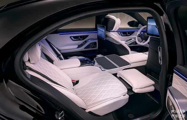 豪华方面,新车前排座椅提供包含“热石按摩”在内的6种专业按摩模式,具备主动支撑调节功能,甚至配备了加热式安全带。除常规五座版外,新车还提供四座版本,后排独立座椅靠背最大可调节43.5°,右后座椅腿托调节角度达50°,乘坐体验更接近头等舱。此外,双13.1英寸后排娱乐屏、39扬声器4D柏林之声音响、双触控遥控器以及航空式小桌板等配置,进一步提升了后排的舒适与豪华感。