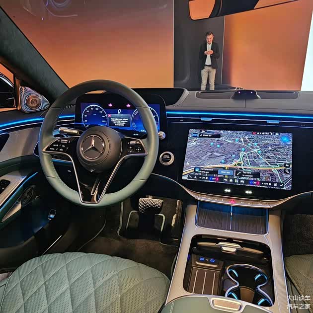 车内最明显的变化是中控屏布局:原先的纵置大屏被一块14.4英寸中控屏与12.3英寸副驾娱乐屏组成的“MBUX超级屏”取代,并搭载奔驰最新的MB.OS架构,内置AI虚拟助手、3D沉浸导航等功能,配合AR-HUD抬头显示,科技氛围更强。全车传感器增至27个,支持城区与高速领航辅助、车位到车位智能驾驶,以及融合后轮转向的自动泊车功能。