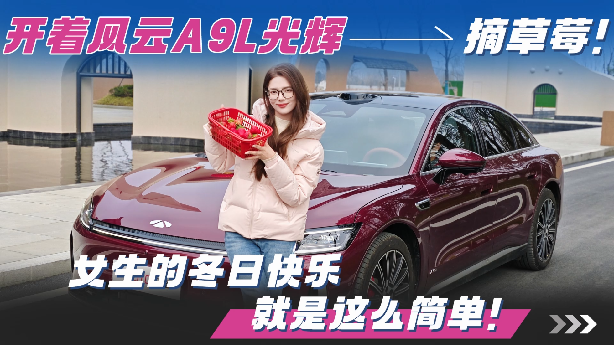 开着风云A9L光辉摘草莓!女生的冬日快乐就是这么简单!