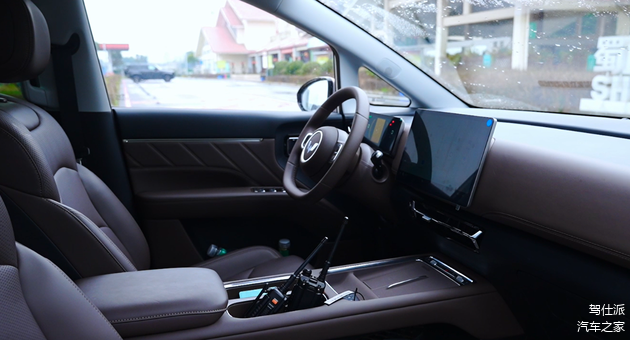 坐进车内,星光730EV内饰在设计风格上比较务实,虽内饰硬塑料材质比较多,但胡桃棕色调搭配仿皮座椅,营造出了一定的居家氛围,符合这个价位的预期。配置上,12.8英寸中控屏支持HUAWEI HiCar、Carlink手机互联,播放音乐时连接稳定,能满足基础需求,但车机智能化程度有限,无语音控制功能,操作需手动完成。前排50W无线充电及前后排充电接口,可满足乘驾人员充电需求。