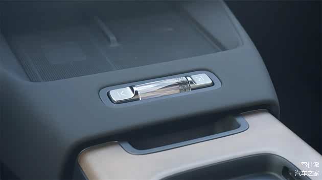 但这并不代表这套内饰观感上会很无聊。中控台的皮革包裹,很巧妙地构成了一个内凹式的造型,仪表和中控屏则“蜗居”在其中,看起来就像是家里的抽屉。中控台下方的充电座上,一组小小的仿水晶材质的多媒体实体键组件,成为车厢里为数不多的点缀物。