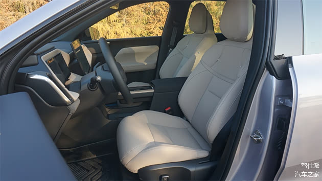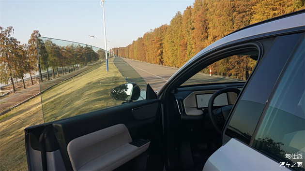 门板的处理方式也很有层次感。塑料材质的背板、外围“叠”了皮革包裹的内层门板,氛围灯被隐藏在门板内部,避免了过于明显的“光污染”。扬声器的面板巧妙地用织物面来进行点缀,实体键被尽可能简化,车门把手和车窗键整合,观感上达到了极度简洁,代价就是去掉了后视镜调节的实体键。