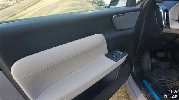 皮革面板的中央空当留作为车门拉手,但是位置过于靠后,每次下车时都要刻意缩着手推门,不好发力。